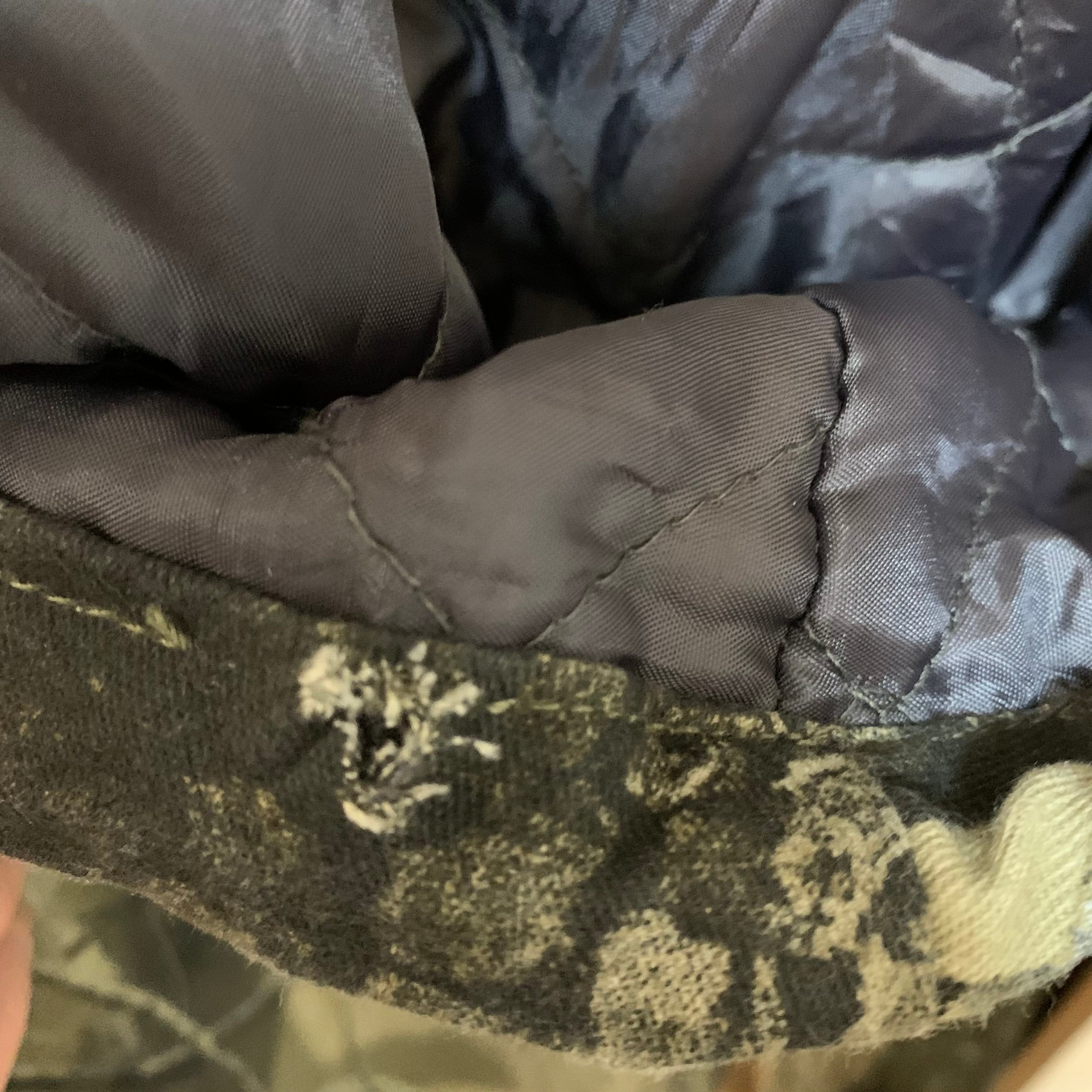画像6枚目のようにフードの縁にダメージありますが、柄的に目立ちません。
